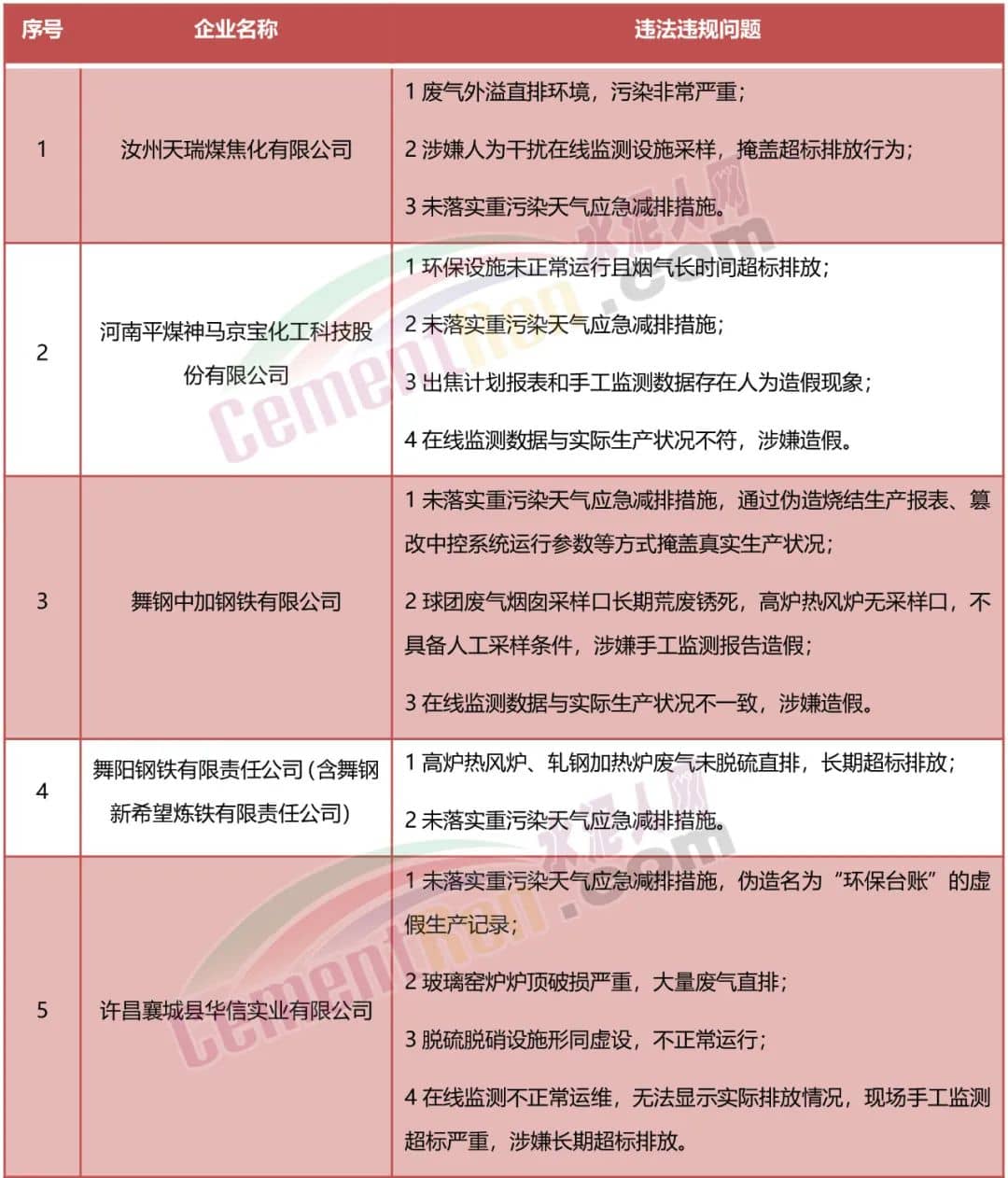 據(jù)水泥人網(wǎng)了解,除上述水泥企業(yè)外,今年河北、江蘇、海南、安徽多地生態(tài)環(huán)境部門通報了多起涉及水泥、混凝土企業(yè)違反大氣污染防治法及存在環(huán)境違法案例。