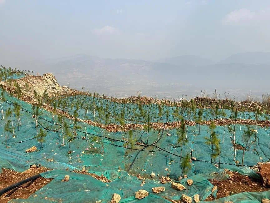 截至2023年2月14日,金江水泥累計修復(fù)面積83440.21㎡,完成率74.23%,投入資金497.05萬元。累計完成平臺覆土約23100噸,邊坡坡面鋪設(shè)爬藤類植物攀爬網(wǎng)約43273.71㎡,安裝輸水管道及噴淋系統(tǒng)約31676.7㎡,種植草籽及草本類花卉種子約29676.7㎡,種植邊坡坡面攀爬藤3000株,平臺種植喬木3500棵。