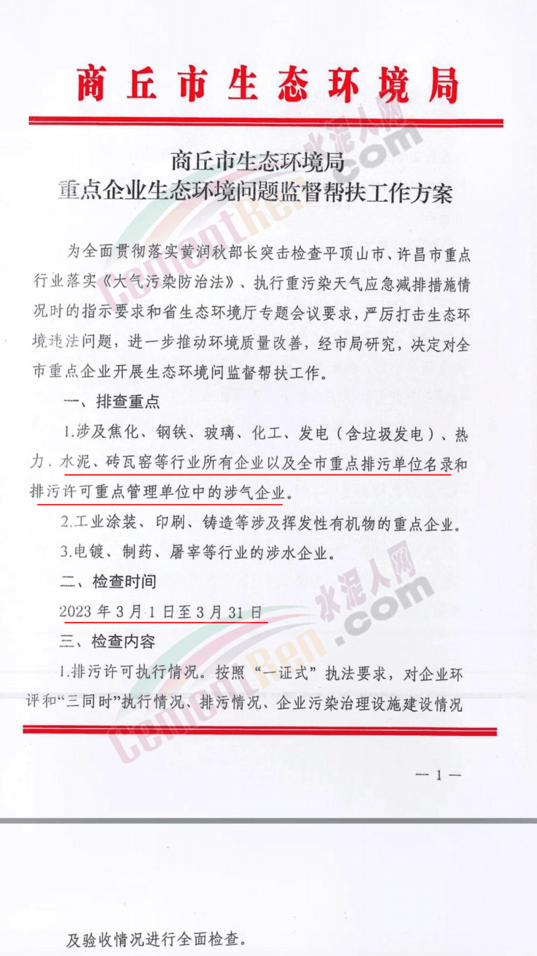 河南商丘3月份大檢查,主要針對(duì)水泥、磚瓦窯等行業(yè)所有企業(yè)