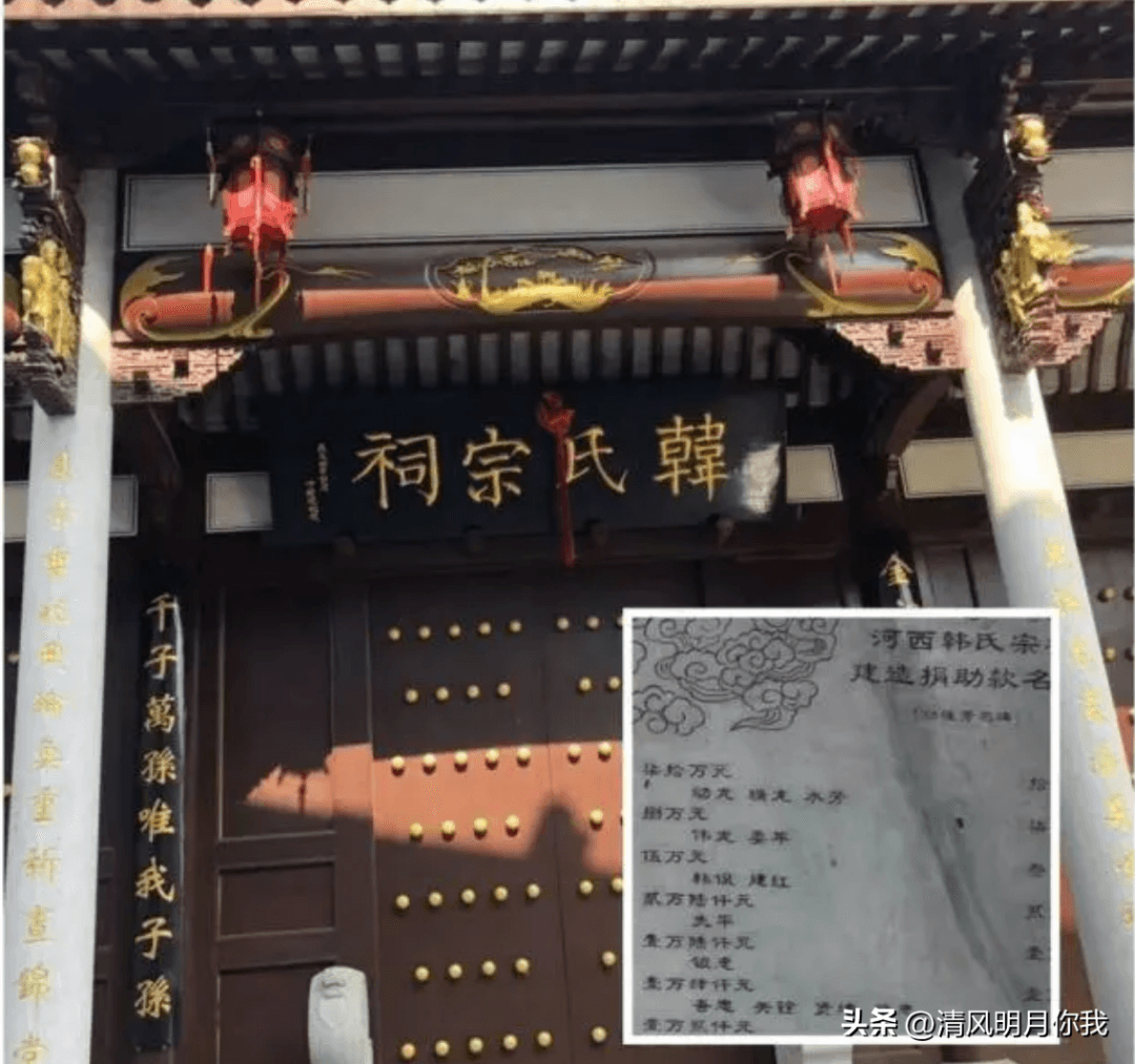 在功德碑上,韓幼龍居首位,他攜家人共捐助七十萬元。