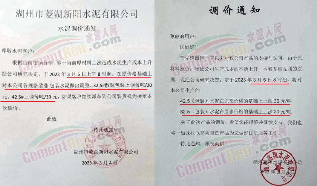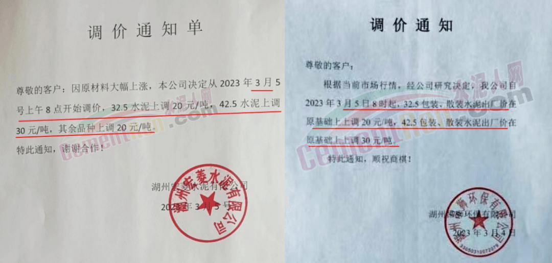 江蘇省鯨龍水泥有限公司通知,由于目前熟料及原材料價格大幅上漲導(dǎo)致生產(chǎn)成本急劇增加,根據(jù)當(dāng)前周邊市場行情和公司產(chǎn)銷情況,經(jīng)公司決定,自2023年3月4日起對M22.5和M32.5等級水泥價格上調(diào)20元/噸。