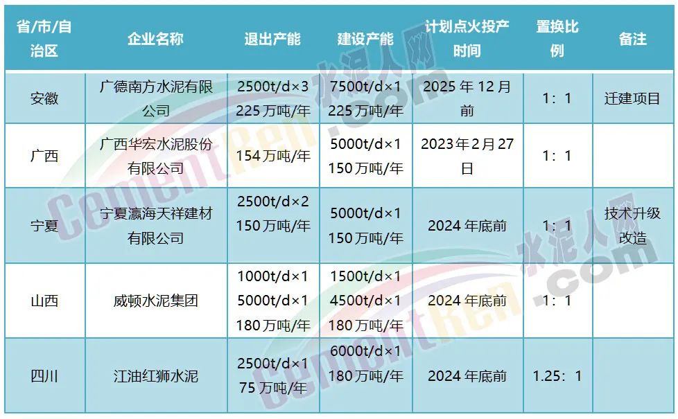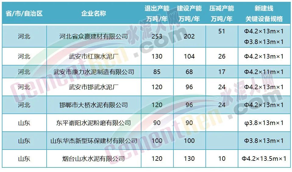 其中河北省眾贏建材有限公司整合五家水泥粉磨企業(yè)退出253萬噸/年粉磨產(chǎn)能,用于新建兩條水泥粉磨生產(chǎn)線,壓減粉磨產(chǎn)能51萬噸/年。