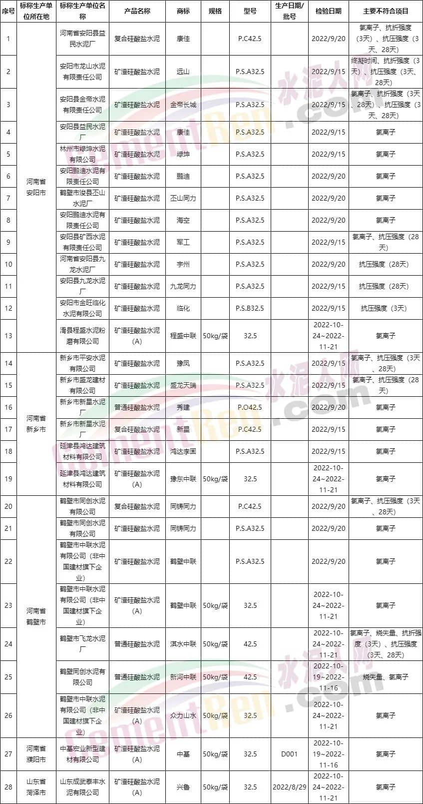 近期,菏澤及豫北水泥質(zhì)量抽檢結(jié)果已經(jīng)出爐,但是抽檢結(jié)果卻讓人大跌眼鏡。菏澤及豫北區(qū)域共抽檢43批次不合格水泥,其中28批次不合格,合格的產(chǎn)品僅15批次,不合格率達(dá)到了驚人的65.1%。