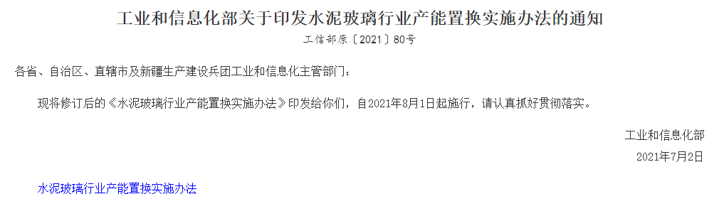2021年8月1日起新修訂的《水泥玻璃行業(yè)產(chǎn)能置換實(shí)施辦法》 規(guī)定嚴(yán)禁備案和新建擴(kuò)大產(chǎn)能的水泥熟料項(xiàng)目。確有必要新建的,必須制定產(chǎn)能置換方案,實(shí)施產(chǎn)能置換。產(chǎn)能置換要求中不論是位于國(guó)家規(guī)定的大氣污染防治重點(diǎn)區(qū)域?qū)嵤┊a(chǎn)能置換的水泥熟料項(xiàng)目,還是跨省置換的項(xiàng)目,均加大了置換比例,但未規(guī)定在能耗方面的置換要求。