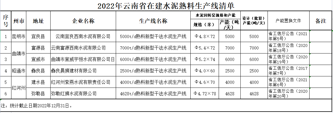 其中包括2022年10月投產(chǎn)的安徽池州海螺水泥股份有限公司10000t/d熟料生產(chǎn)線、2022年8月投產(chǎn)的合肥南方水泥有限公司6000t/d熟料生產(chǎn)線以及2021年12月投產(chǎn)的馬鞍山鐵鵬水泥有限公司4000t/d。