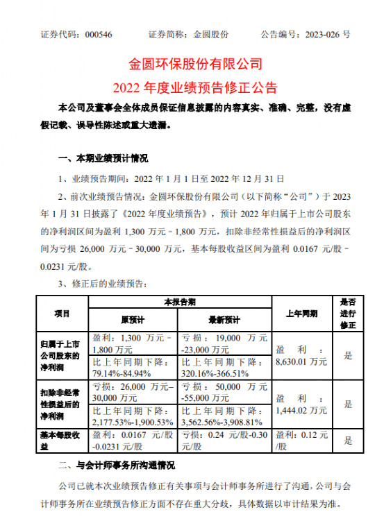 2023年4月16日晚間,金圓股份業(yè)績爆雷,預(yù)計(jì)2022年業(yè)績由盈利轉(zhuǎn)為虧損,預(yù)計(jì)虧損1.9億元至2.3億元,同比下降320.16%至366.51%??鄯呛筇潛p5億至5.5億元,同比下降3562.56%至3908.81%。