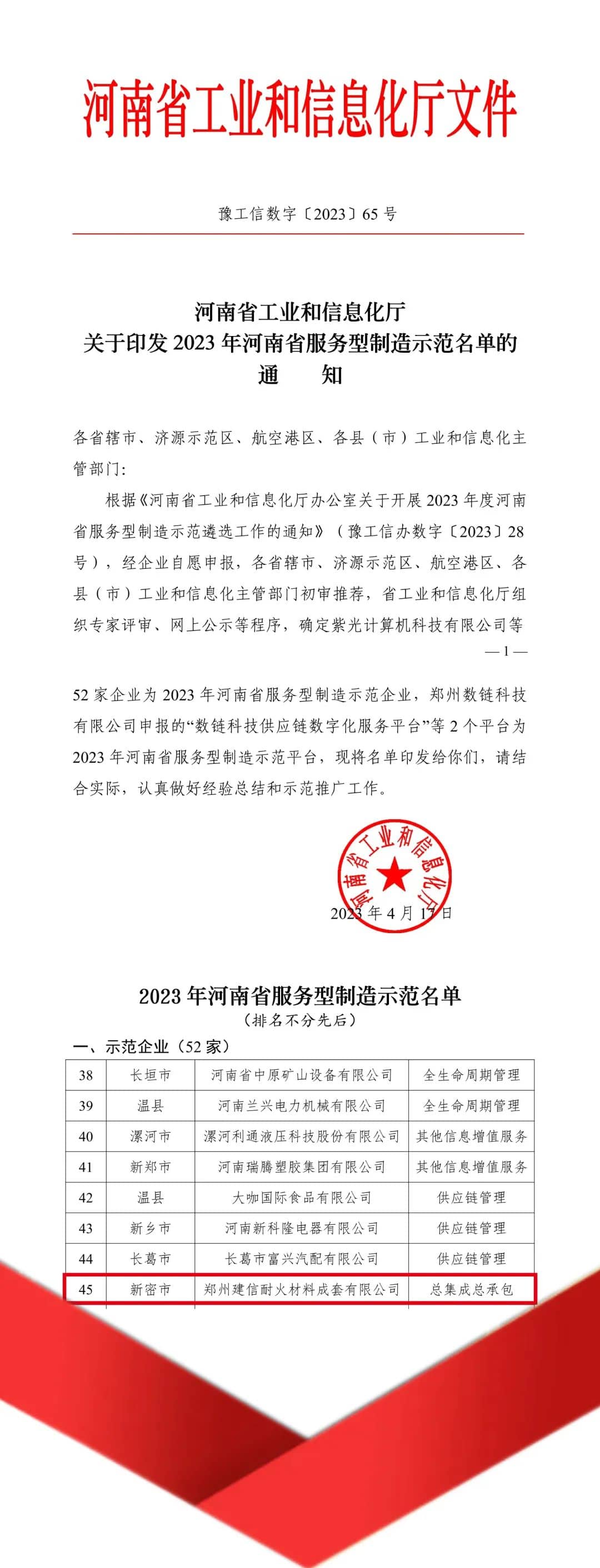 近日,河南省工業(yè)和信息化廳公布了“2023年服務型制造示范企業(yè)”獲批名單,公司被認定為“總集成總承包”領域服務型制造示范企業(yè)。服務型制造是制造與服務融合發(fā)展的新型模式和產業(yè)形態(tài),既是先進制造業(yè)和現代服務深度融合的重要方向,也是近年來國家大力推動企業(yè)生產經營重心從制造環(huán)節(jié)向制造和服務并重的巨大轉變。