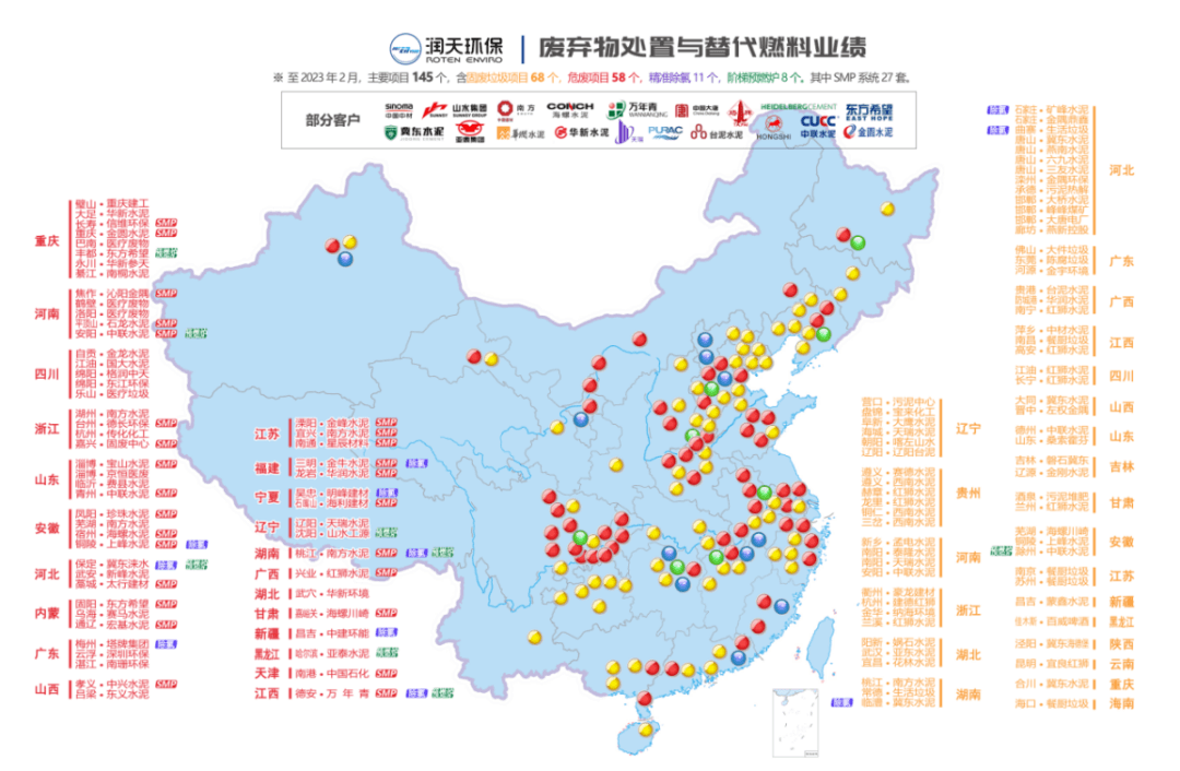 除萬年青集團外,潤天環(huán)保還為中國建材、海螺水泥、金隅冀東、紅獅水泥、臺灣水泥、亞洲水泥、金圓水泥等各大水泥集團落地了危廢協(xié)同處置等多個項目。經(jīng)多家水泥企業(yè)實踐證明,潤天環(huán)保相關(guān)技術(shù)有效推動了危廢處置增產(chǎn)、煤耗下降達標和水泥窯替代燃料高效利用,同時可以利用工業(yè)廢料和垃圾等制備RDF替代燃料,具有高適應(yīng)性、高可靠性、高燃燒率等優(yōu)勢。