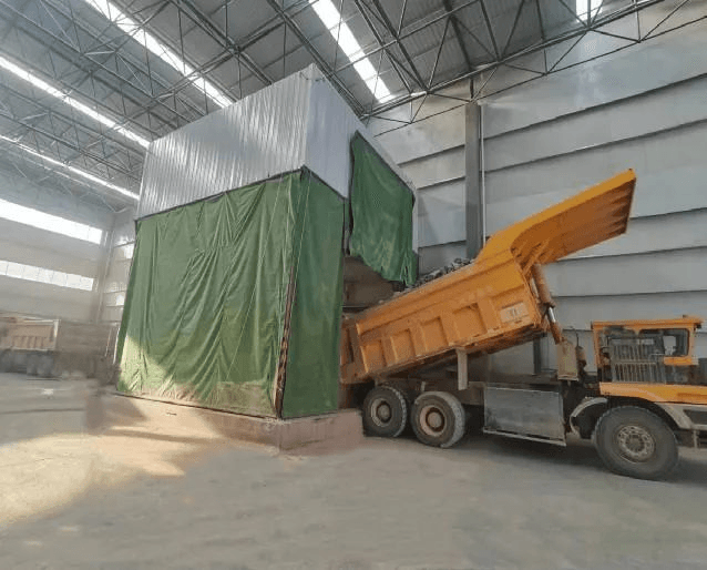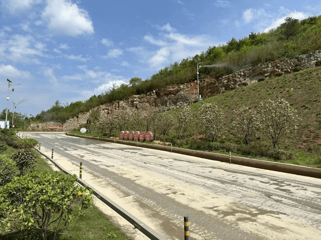 為建設(shè)無塵礦山,避免石料卸車時(shí)形成揚(yáng)塵,兗州中材投資設(shè)計(jì)了361平臺(tái)卸料大棚,棚內(nèi)安裝噴霧降塵系統(tǒng),形成作業(yè)時(shí)外面不見灰、里面不見土的清潔作業(yè)環(huán)境,有效保證了礦山作業(yè)時(shí)司機(jī)的健康安全。