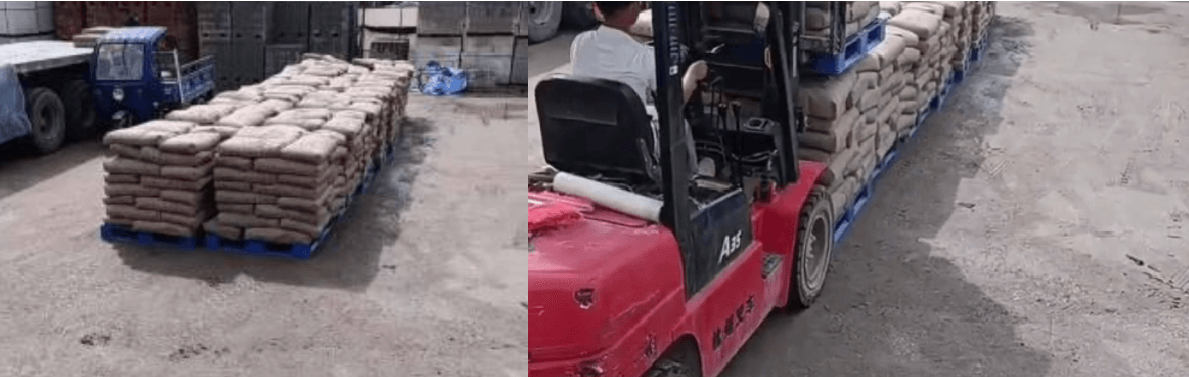 當(dāng)?shù)亟?jīng)銷商對(duì)水泥人網(wǎng)表示:托盤水泥可以直接用叉車裝卸,減少經(jīng)銷商在裝卸時(shí)的人工成本,每一個(gè)托盤可裝2~3噸。一車水泥傳統(tǒng)人工卸車需要90分鐘左右,叉車卸托盤15分鐘不到就可卸完。