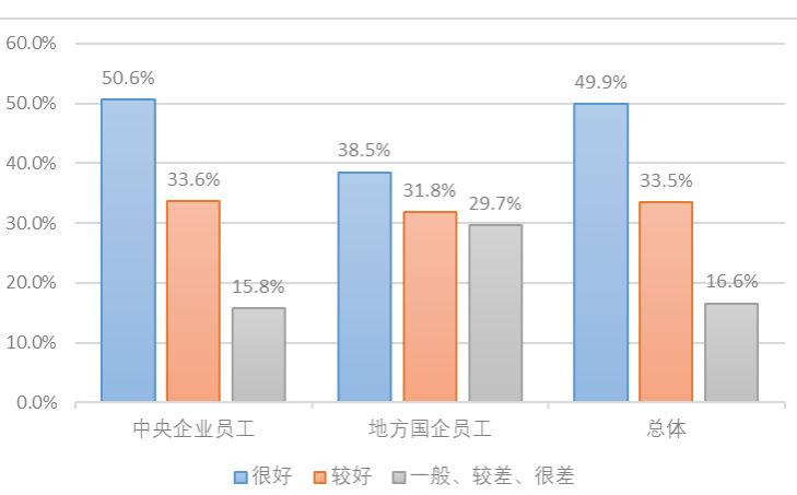 3.部分國企黨組織的海外品牌傳播能力有待進(jìn)一步提升。在國企深度參與國際市場的背景下,部分國企國際化傳播經(jīng)驗不足、海外宣傳能力不足的問題愈發(fā)突出,部分國企黨組織出現(xiàn)一定程度的功能缺位。國企“走出去”與品牌傳播建設(shè)并不同步,品牌傳播中的弱點(diǎn)已經(jīng)成為國企“走出去”過程中的巨大隱患。相關(guān)研究指出,中國國企“傳播與公關(guān)能力不足,媒體溝通、政府公關(guān)有待加強(qiáng)”“國際化營銷經(jīng)驗還比較欠缺”。課題調(diào)研結(jié)果顯示,受訪的中央企業(yè)職工中,只有50.6%的員工認(rèn)為企業(yè)黨組織在領(lǐng)導(dǎo)打造世界一流品牌過程中作用發(fā)揮得很好,還有15.8%的員工認(rèn)為做得一般、較差或很差,而地方國企這兩項比例分別為38.5%和29.7%(見圖5)??梢?,國企職工對黨組織領(lǐng)導(dǎo)打造世界一流品牌的表現(xiàn)總體上認(rèn)可度不及預(yù)期。