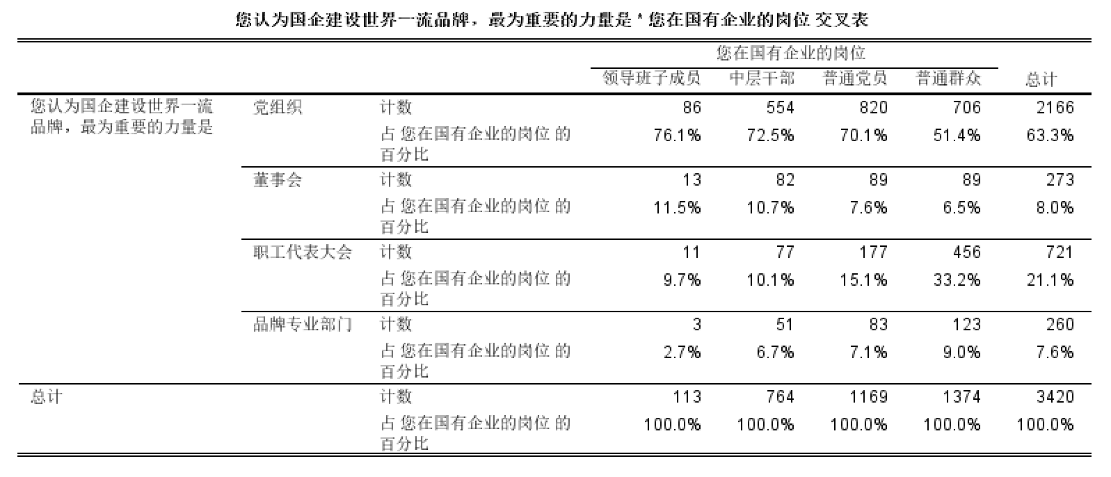 為更加全面了解我國國有企業(yè)黨組織領(lǐng)導(dǎo)打造世界一流品牌的現(xiàn)狀,本課題組采用問卷調(diào)查法,面向多個中央企業(yè)和地方國企的職工發(fā)放了3420份問卷,并結(jié)合學(xué)界研究成果和調(diào)研結(jié)果,總結(jié)出當(dāng)前國企黨組織領(lǐng)導(dǎo)打造世界一流品牌的成就以及存在的問題。