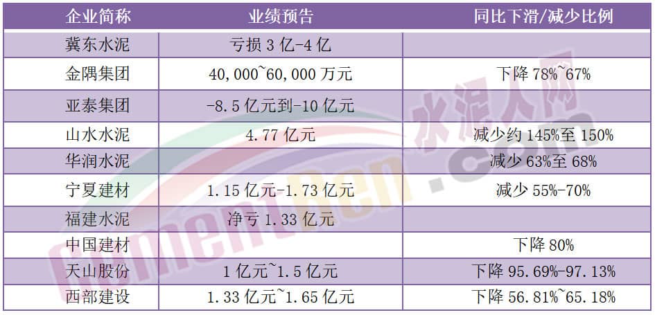近來多家上市公司發(fā)布了上半年業(yè)績預(yù)告,除塔牌水泥預(yù)告上半年實現(xiàn)凈利潤4.54億元-5.07億元,同比增長160%-190%外,絕大多數(shù)企業(yè)業(yè)績出現(xiàn)50%以上的下滑。