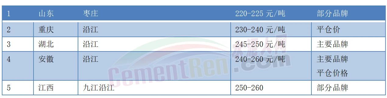 熟料價(jià)格方面山東棗莊及重慶、湖北、安徽、江西沿江熟料報(bào)價(jià)多在220-260元/噸之間。