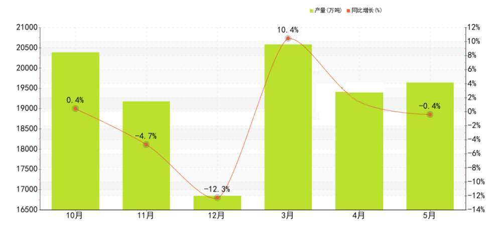 2022年10月-2023年5月份全國(guó)水泥產(chǎn)量統(tǒng)計(jì)