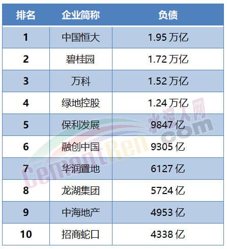 中國(guó)房地產(chǎn)負(fù)債TOP10企業(yè)