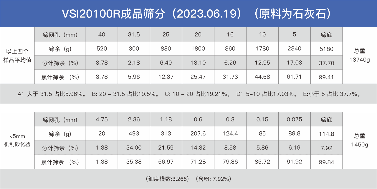 表:石灰?guī)r破碎成品的化驗結(jié)果