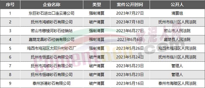 9家砂石企業(yè)宣布破產(chǎn)或進(jìn)入破產(chǎn)程序