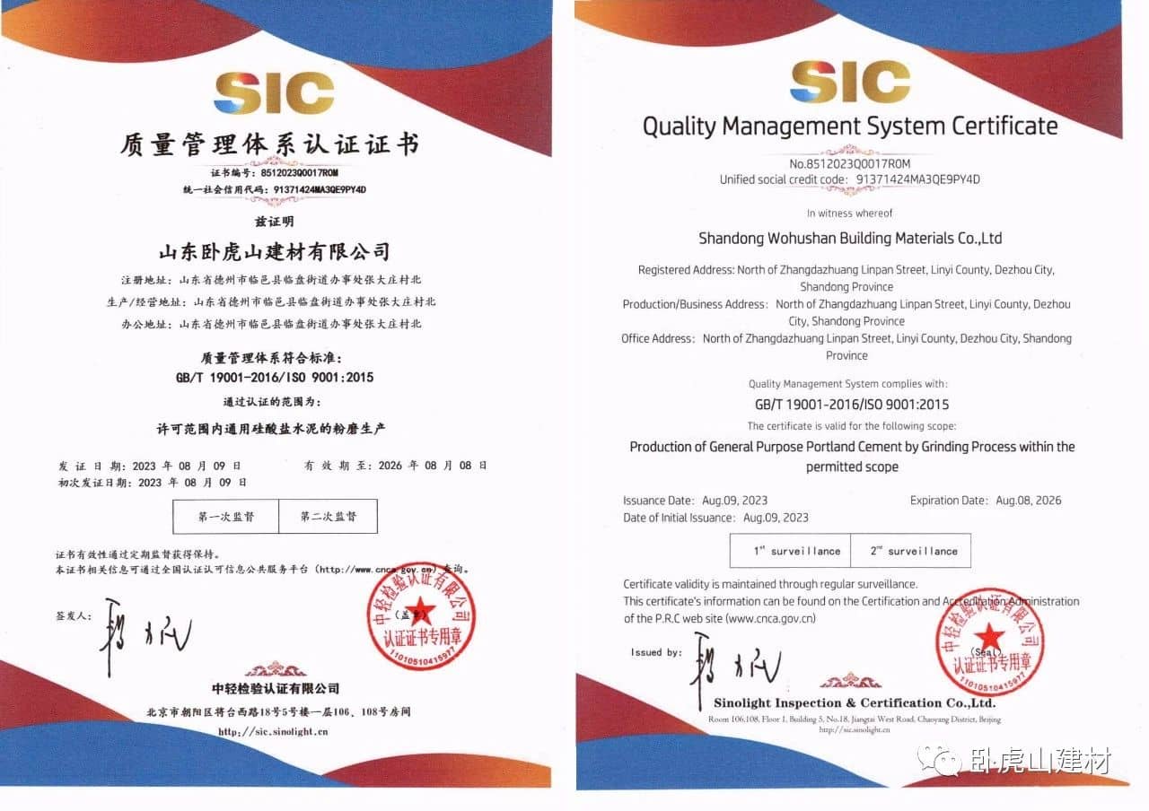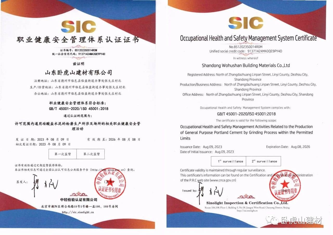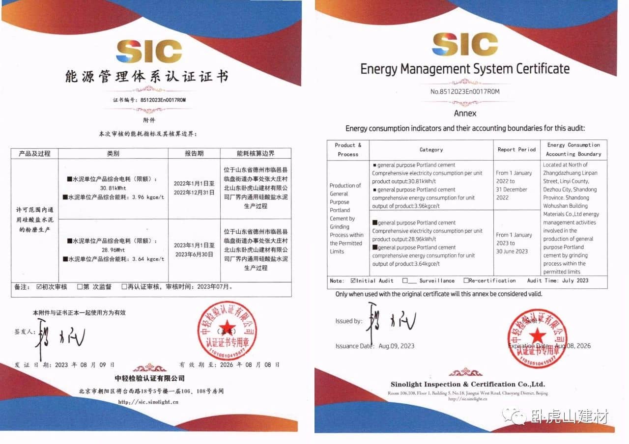 同時,專家組對我公司質(zhì)量方面的嚴格管理和運行記錄的細致提出表揚,對于山東臥虎山建材有限公司的能源、質(zhì)量、環(huán)境和職業(yè)健康安全管理體系管理規(guī)范程度、運行有效程度給予高度認可,一致認為公司在質(zhì)量、環(huán)境、職業(yè)健康安全和能源方面的管理符合體系運行的規(guī)定,同意推薦。同時,為保證公司體系更加有效運行,提出了寶貴建議。經(jīng)過中輕檢審核專家對公司上報材料和專家意見融合評審后,2023年8月9日正式發(fā)放證書。