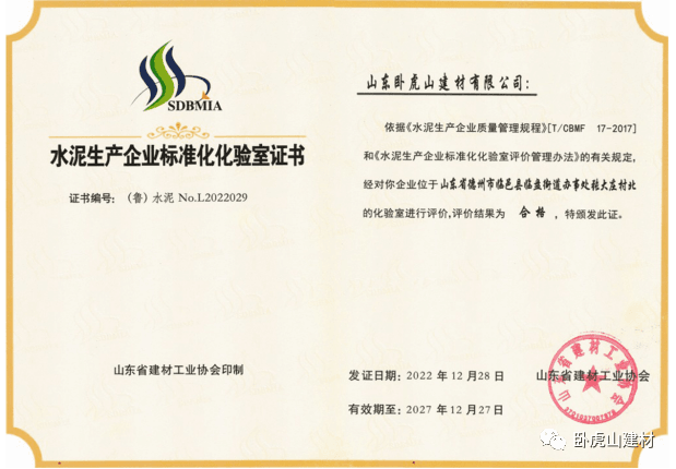 今年以來,公司憑借強大的技術(shù)力量、先進的生產(chǎn)設備、可靠的原料質(zhì)量和過硬的產(chǎn)品質(zhì)量,先后獲得全省水泥生產(chǎn)企業(yè)標準化化驗室證書、全省2022年水泥物理檢驗和化學分析大對比全合格單位、2023年度全國水泥質(zhì)量萬里行活動區(qū)域質(zhì)量標桿企業(yè)等榮譽稱號。