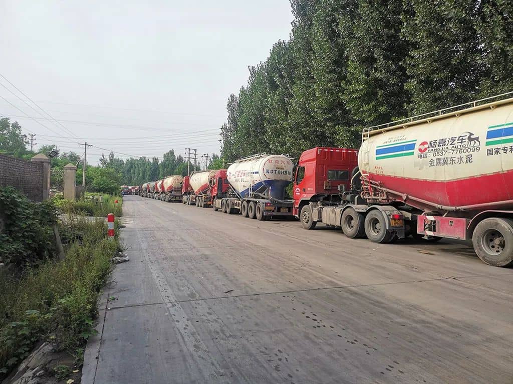 “金隅太行是水泥大廠,每天都有水泥車來拉水泥,也有供應商的送貨車來??墒蔷退闶堑谝粋€到的,也進不了門。排隊都十多天了,每天上午8點放車進廠,晚上不到8點后就不讓進廠了。我們司機的時間就是錢,跑起來才能賺到運費,才能還上貸款”拉水泥的司機無奈地說。