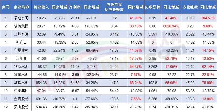 多家水泥企業(yè)應收賬款同比增加
