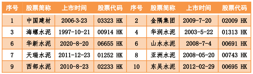 20多年來,中國上市公司的規(guī)模不斷擴大,質(zhì)量逐步提高,在行業(yè)經(jīng)濟運行中的重要性日益突出,已經(jīng)成為水泥行業(yè)發(fā)展的一個縮影。據(jù)不完全統(tǒng)計,中國水泥行業(yè)上市公司數(shù)量為30家左右(有熟料、水泥生產(chǎn)業(yè)務(wù)),A股水泥行業(yè)有22家上市公司,H股有10家上市公司,其中海螺水泥、金隅集團、華新水泥為A股H股同時上市的公司。