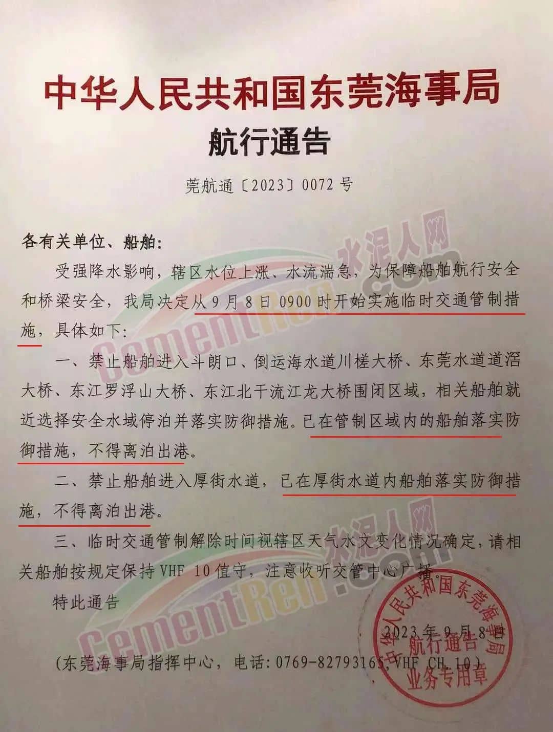 因暴雨、臺風(fēng)影響,華南多地大宗物流停限運(yùn),施工工地及攪拌站停工停產(chǎn),水泥發(fā)運(yùn)量近零。水運(yùn)物流方面,海事局發(fā)布臨時(shí)交通管制措施管制區(qū)內(nèi)船舶禁止進(jìn)入,已進(jìn)入船舶不得離泊出港。