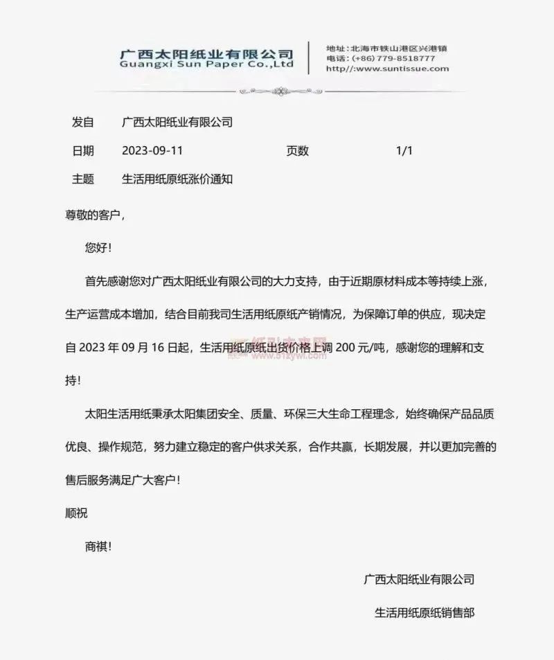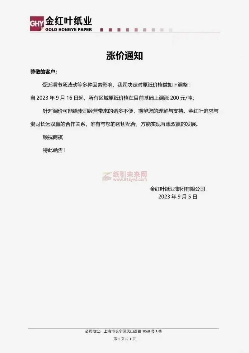 紙類:十幾家企業(yè)宣布產(chǎn)品漲價(jià)50-200元/噸