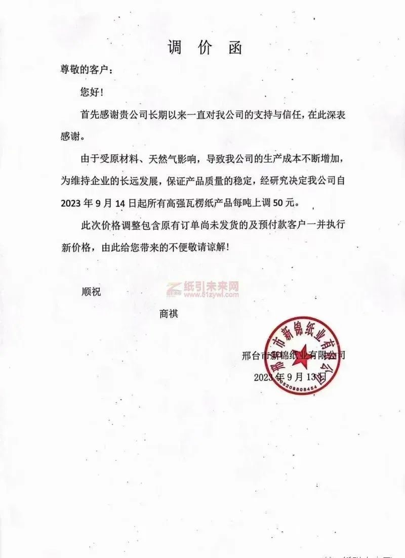 臺市新錦紙業(yè)、棗莊市恒宇紙業(yè)、浙江華天再生資源、江蘇富星紙業(yè)、 山東豐源中盛紙業(yè)、江蘇金田紙業(yè)、山東豐碩紙業(yè)、浙江明路控股集團(tuán)、河南匯祥再生資源科技、四川華僑鳳凰紙業(yè)等宣布產(chǎn)品每噸上調(diào)50元。