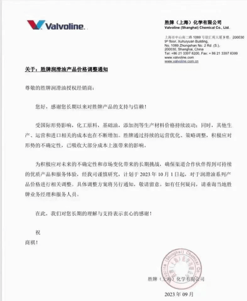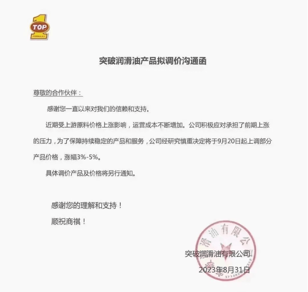 多家知名潤(rùn)滑油宣布漲價(jià)5%