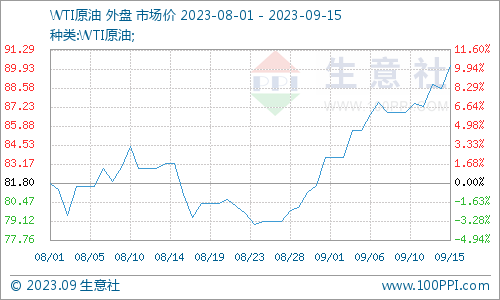 沙特持續(xù)減產(chǎn),今年第四季度全球石油市場(chǎng)將面臨每天超過(guò)300萬(wàn)桶的供應(yīng)缺口,9月14日,國(guó)際原油期貨上漲,漲幅明顯。美國(guó)WTI原油期貨主力合約結(jié)算價(jià)報(bào)90.16美元/桶,漲幅1.64美元或1.9%。今年WTI首次站上90美元關(guān)口,創(chuàng)2022年11月以來(lái)新高。8月23日以來(lái),WTI原油價(jià)格階段性大漲14.4%。
