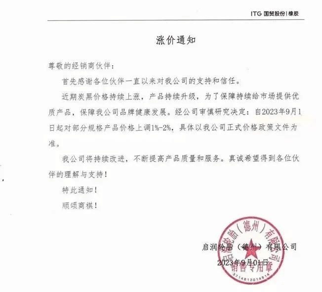 近期,40多家輪胎企業(yè)發(fā)布漲價(jià)通知,其中有針對(duì)全鋼胎的,也有針對(duì)半鋼胎的。正新、瑪吉斯、賽輪、玲瓏等企業(yè)更是先后發(fā)布多張漲價(jià)通知,對(duì)多品牌、多品類產(chǎn)品漲價(jià),漲幅在3%-5%左右。