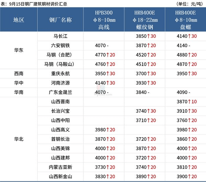 上周五(9月15日),全國(guó)累計(jì)15家鋼廠發(fā)布調(diào)價(jià)信息,其中14家鋼廠漲價(jià),整體調(diào)幅在0-30元/噸。