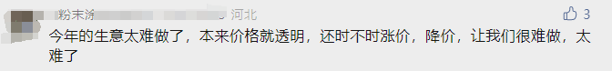 對(duì)于各種大宗商品漲價(jià)以及各種“不平等”的要求,部分網(wǎng)友也坐不住了,直呼太難了,本來(lái)價(jià)格就透明,還時(shí)不時(shí)漲價(jià),真是生意難做。