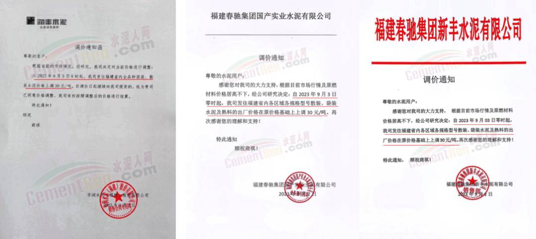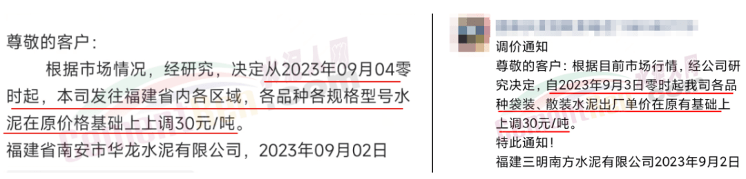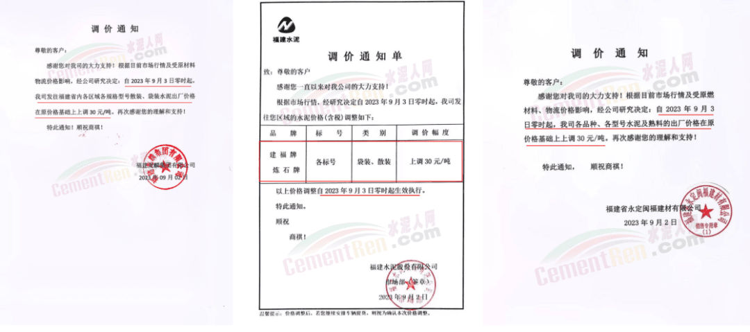 9月3日,占福建省熟料產(chǎn)能近60%,前五強(qiáng)的華潤水泥、福建水泥、紅獅水泥、金牛水泥、龍麟集團(tuán)等10多家企業(yè)陸續(xù)通知全省熟料及各品種水泥價格上調(diào)30元/噸。