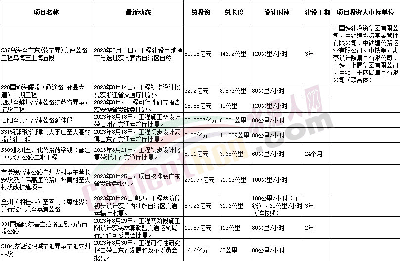 據(jù)水泥人網(wǎng)了解,9月份以來(lái),包括國(guó)家發(fā)改委、省級(jí)發(fā)改委及交通廳、自然資源部以及交通運(yùn)輸部等多個(gè)部門審批通過(guò)了14個(gè)重大交通項(xiàng)目,其中包括公路項(xiàng)目10個(gè),鐵路項(xiàng)目2個(gè),城軌交通項(xiàng)目和機(jī)場(chǎng)項(xiàng)目各1個(gè),工程總投資約1830億元。