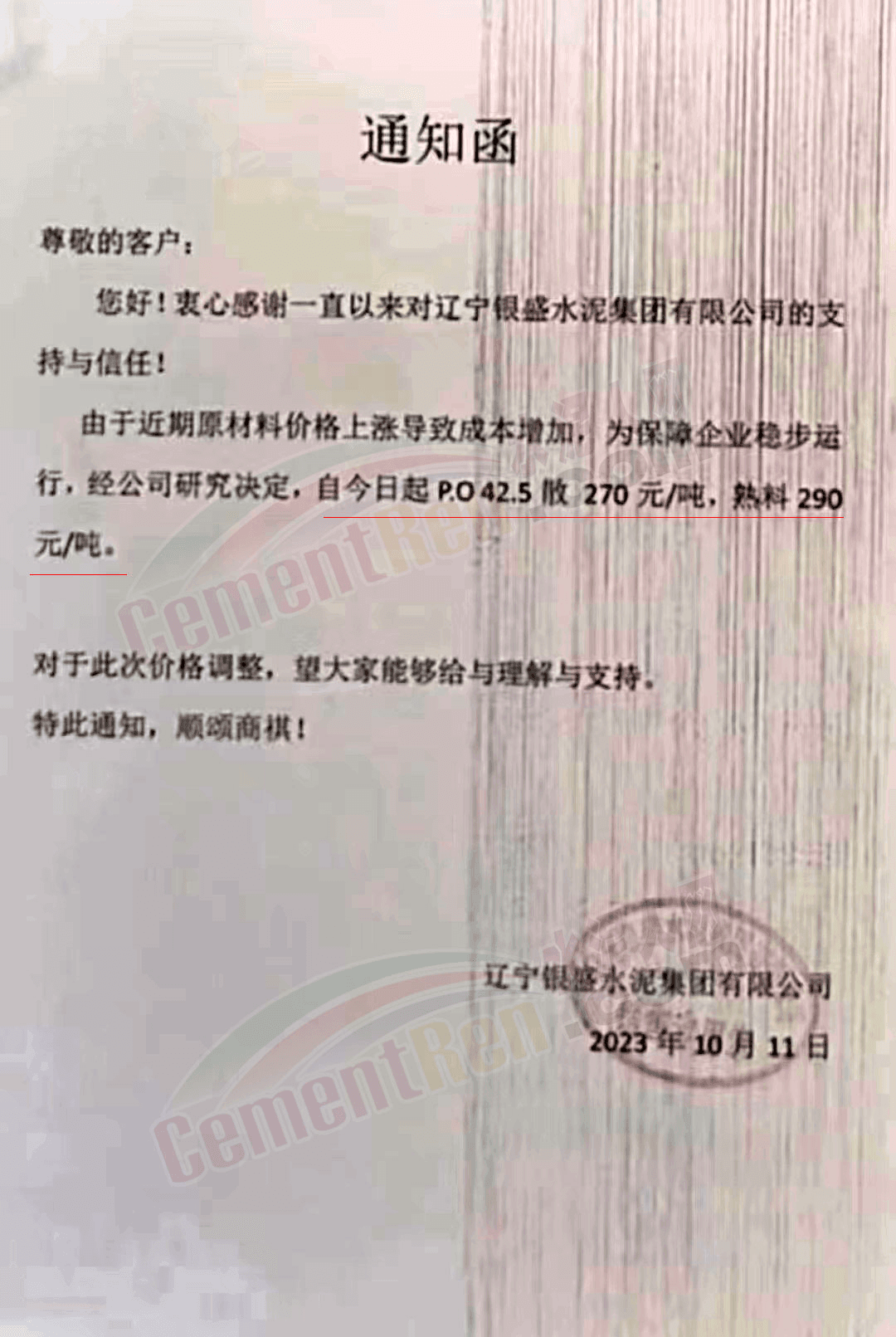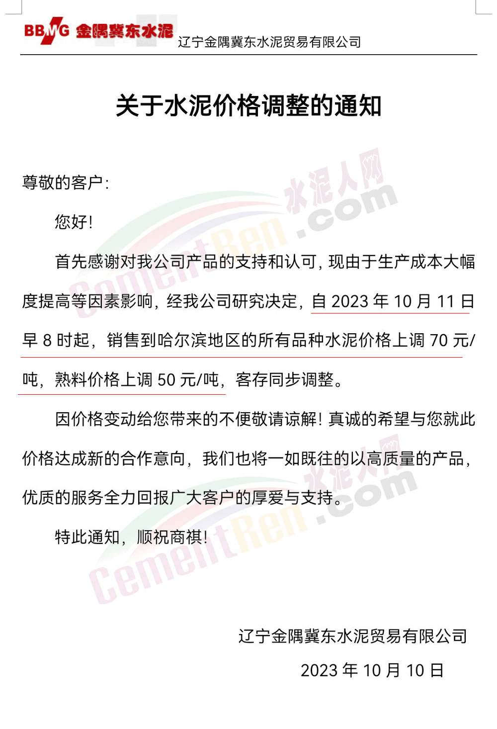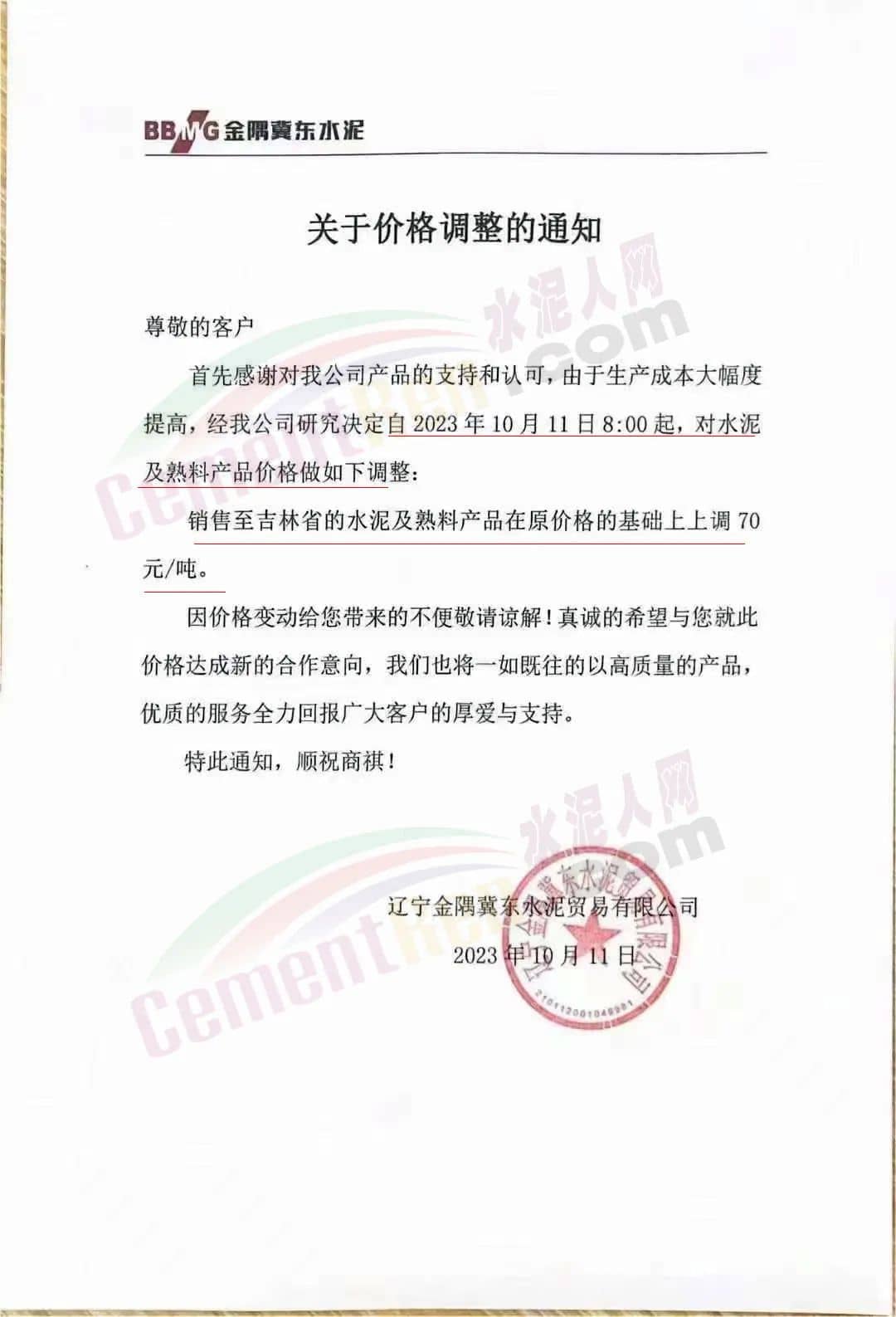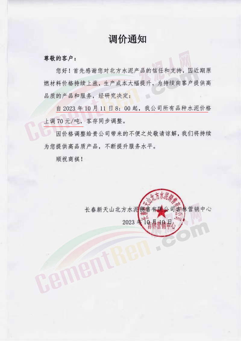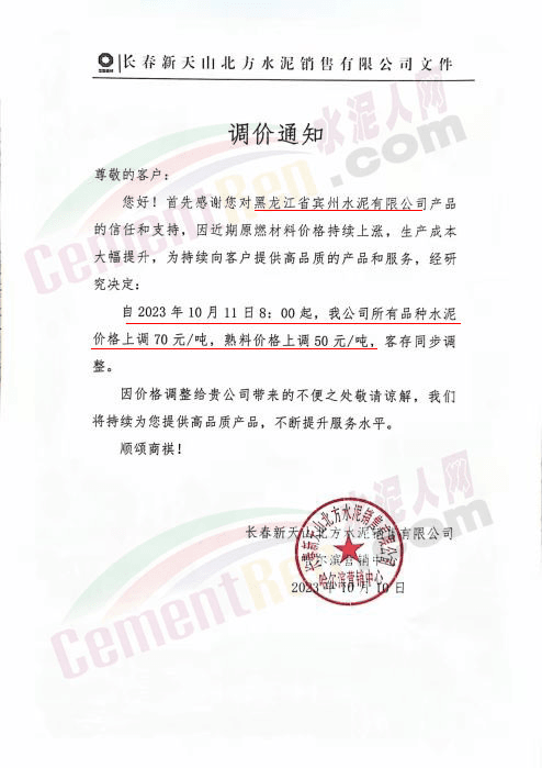水泥人網(wǎng)通訊員消息:日前遼、吉、黑區(qū)域主要品牌企業(yè)再次通知上調(diào)水泥、熟料報(bào)價(jià)。