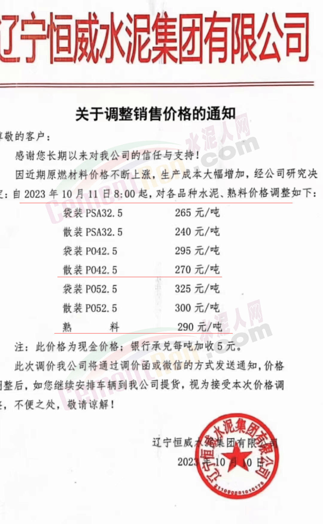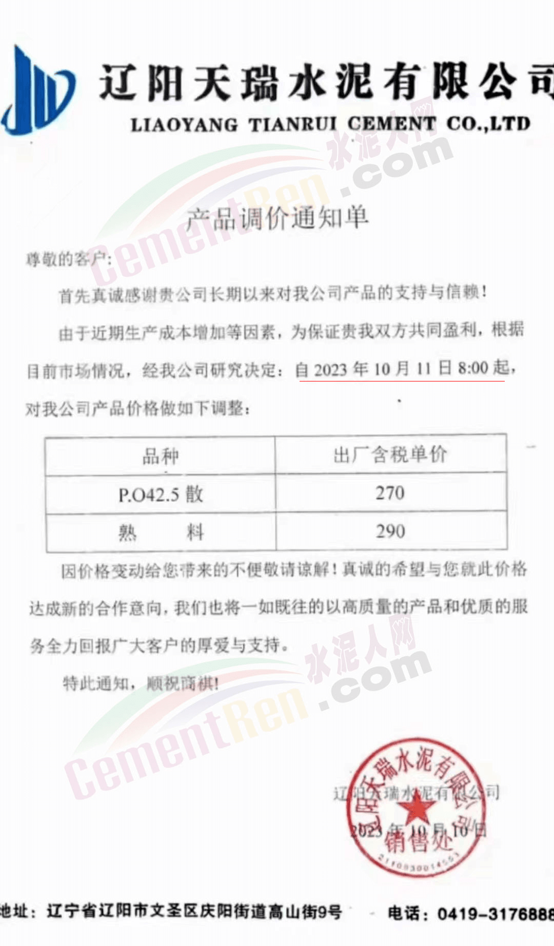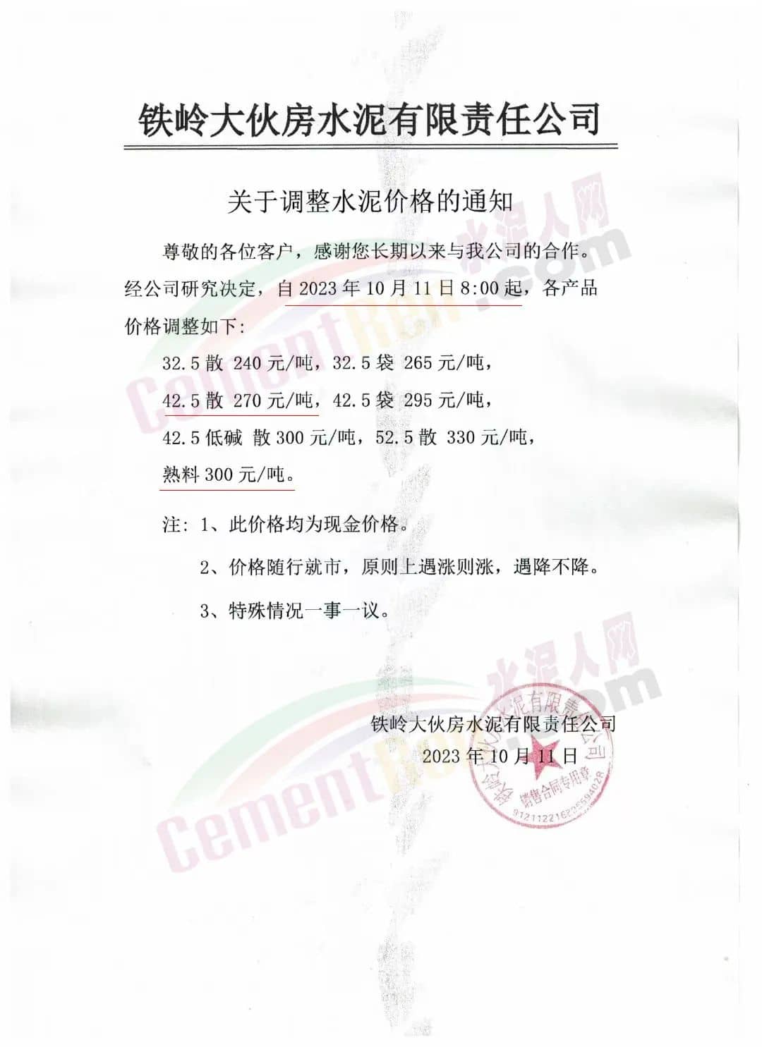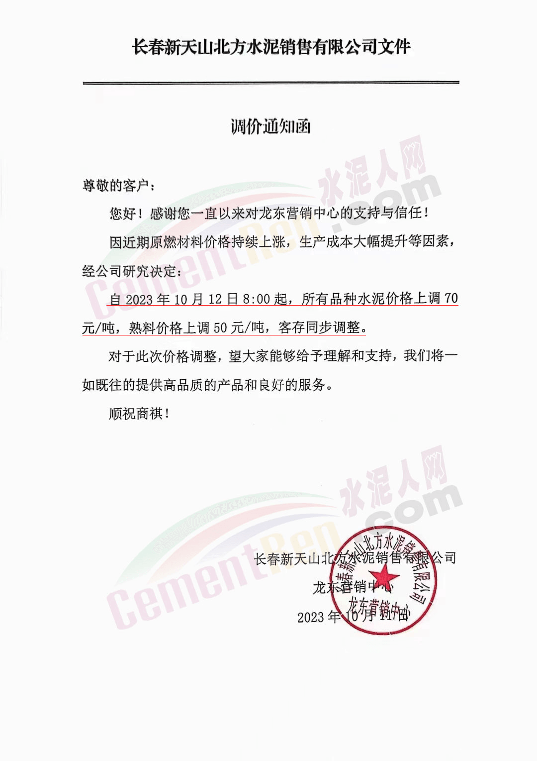 水泥人網(wǎng)通訊員消息:日前遼、吉、黑區(qū)域主要品牌企業(yè)再次通知上調(diào)水泥、熟料報(bào)價(jià)。