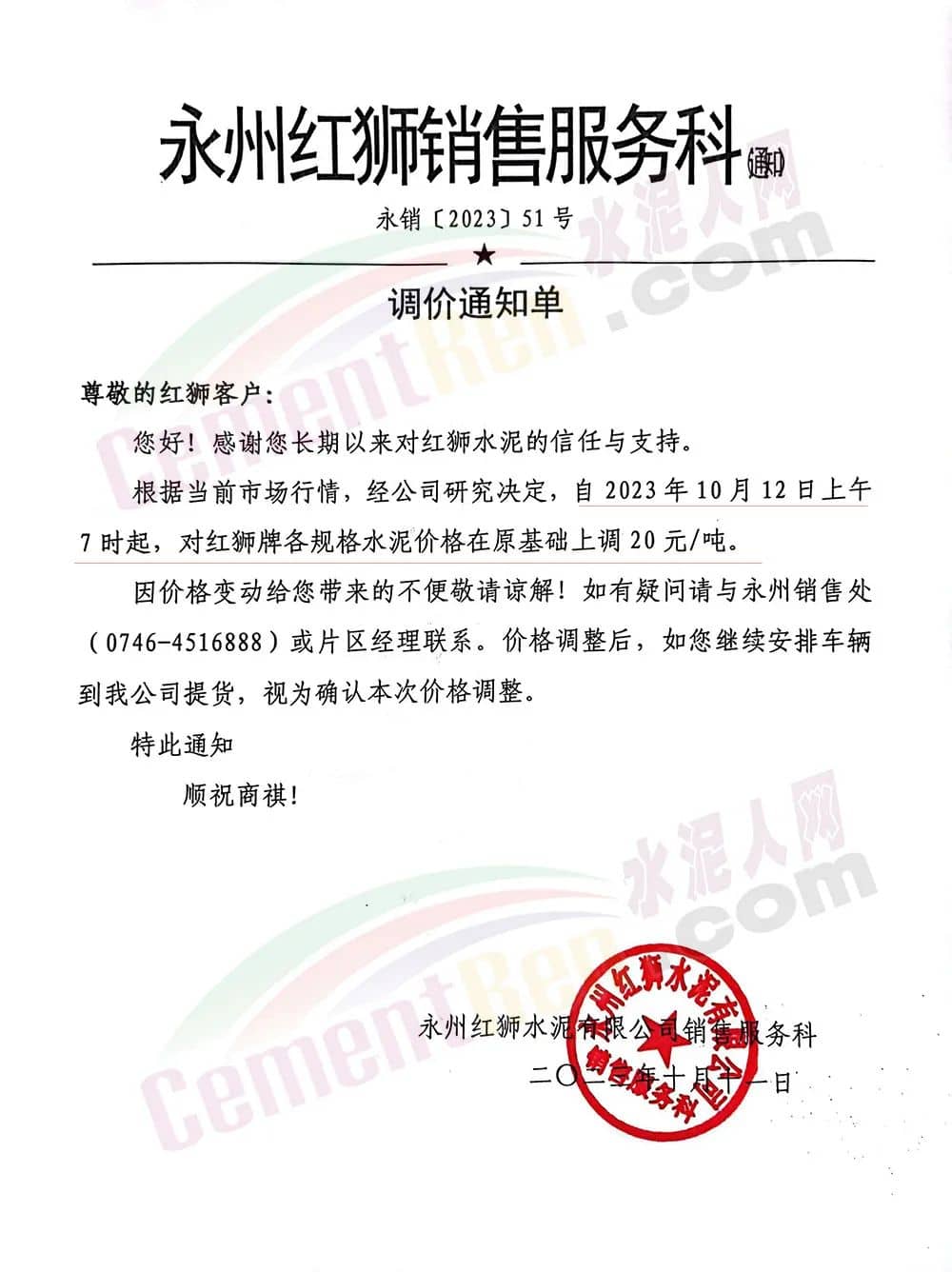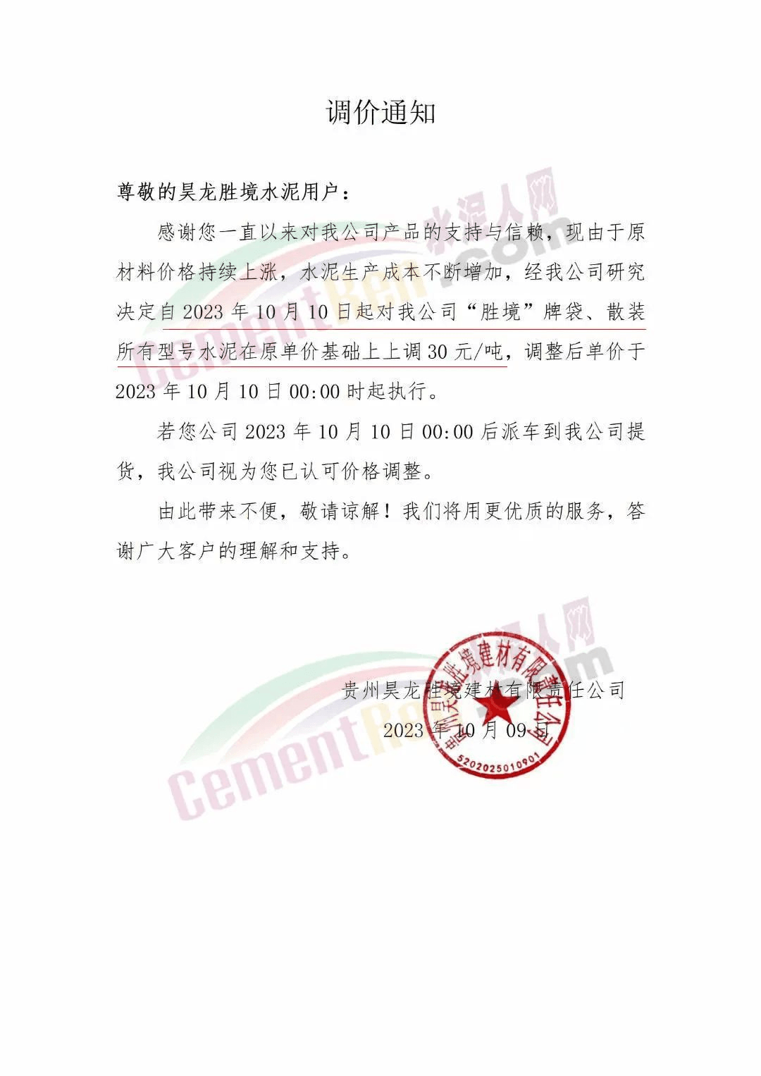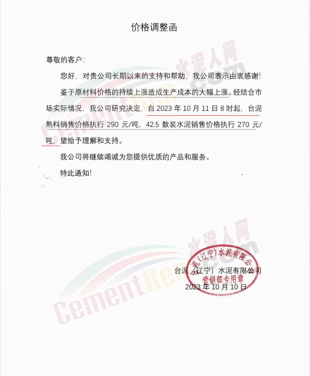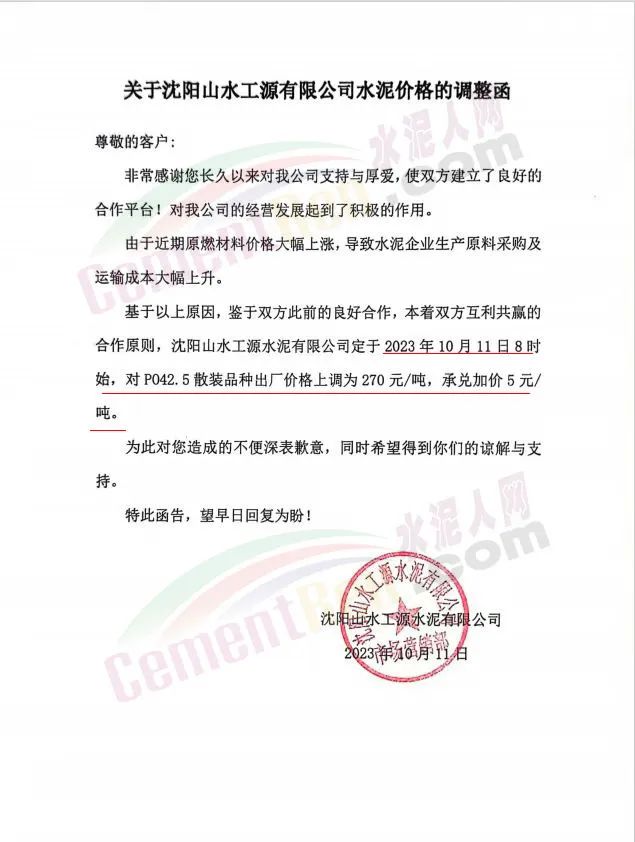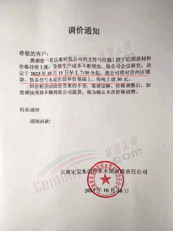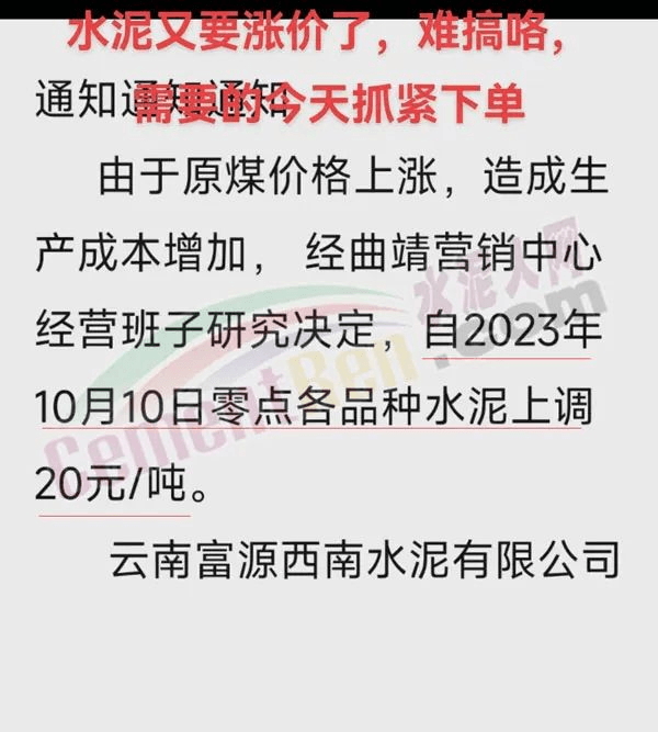 四川區(qū)域主要品牌水泥企業(yè)銷(xiāo)售經(jīng)理通知,將于12日起上調(diào)水泥報(bào)價(jià)50元/噸。