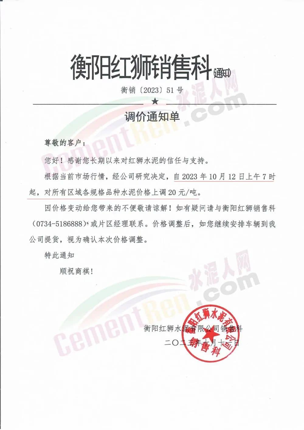 同日湖南區(qū)域主要品牌企業(yè)通知12日起再次上調(diào)水泥價(jià)格20元/噸。