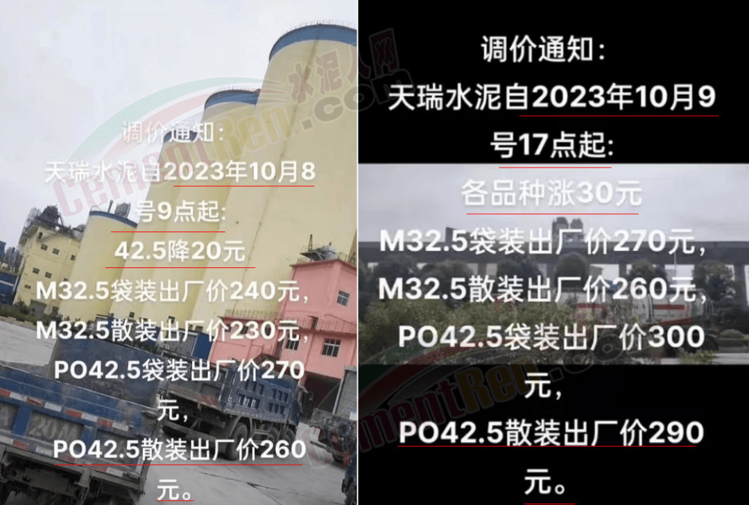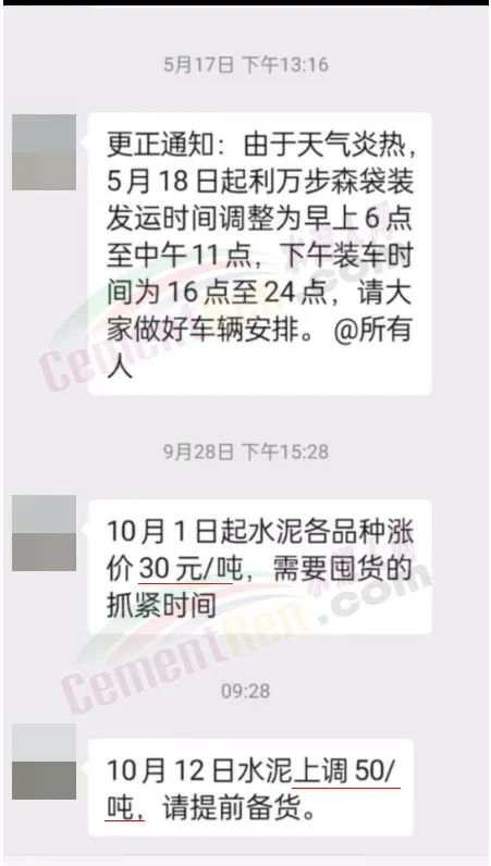 日前,河南地區(qū)主要品牌企業(yè)天瑞、中聯(lián)同力等通知上調(diào)報(bào)價(jià)30元/噸。當(dāng)?shù)亟?jīng)銷(xiāo)商反饋稱(chēng):企業(yè)通知10月8日9點(diǎn)降價(jià)20元/噸,降后P.O42.5散裝水泥出廠報(bào)價(jià)260元/噸;10月9日17點(diǎn)又通知上調(diào)30元/噸,上調(diào)后P.O42.5散裝水泥出廠價(jià)報(bào)290元/噸。變價(jià)像“川劇變臉”一樣快。