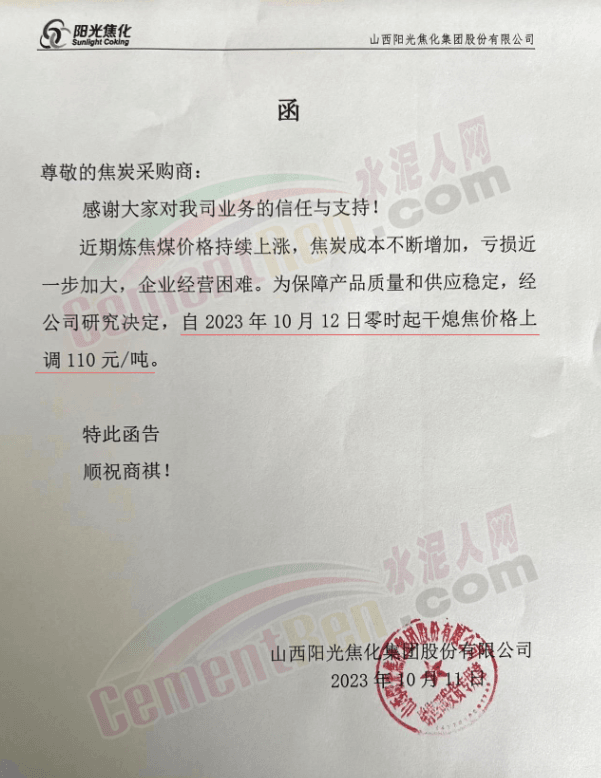12日,多家焦煤企業(yè)通知,焦炭價(jià)格上調(diào)110元/噸。