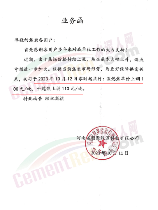 日前,浙江義烏市一水泥批發(fā)商發(fā)通知給客戶稱:接水泥廠通知,各品牌水泥于10月15日早上8時(shí)上調(diào)20元/噸,有需要的客戶抓緊備貨。