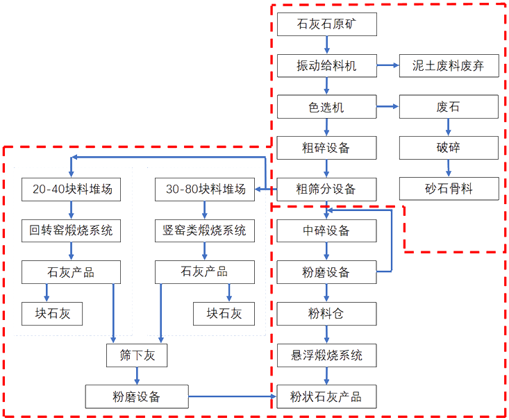 1、礦石得到價(jià)值最大化利用,根據(jù)礦石品位和市場(chǎng)情況,確定塊狀石灰和粉狀石灰的產(chǎn)能配置,也可配套砂石骨料產(chǎn)線,產(chǎn)品多樣化;
