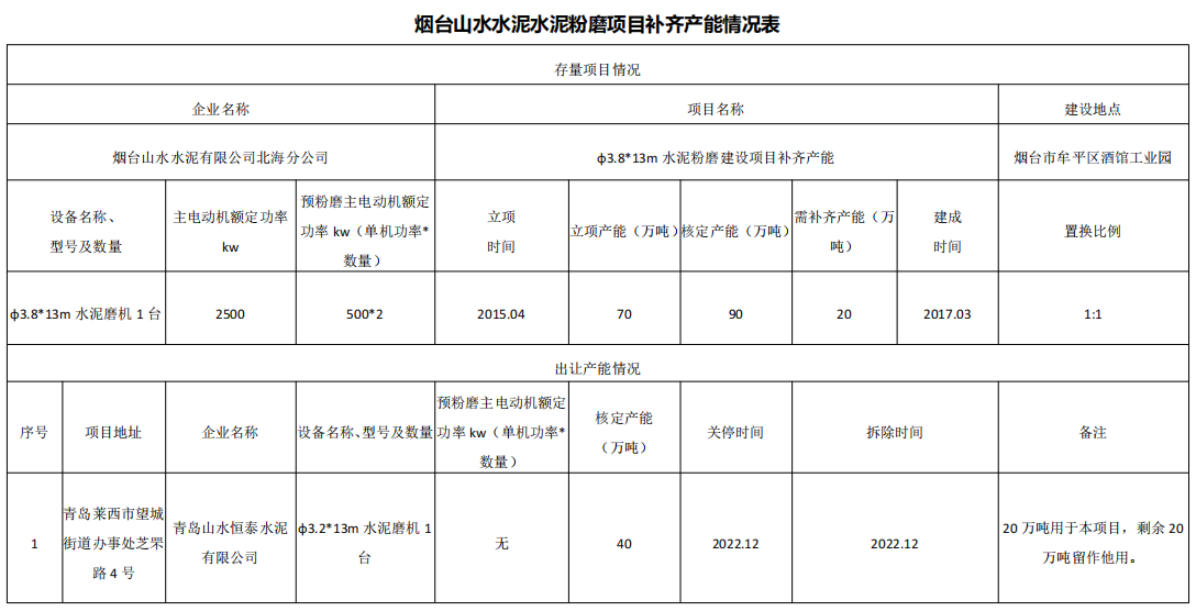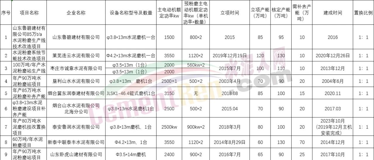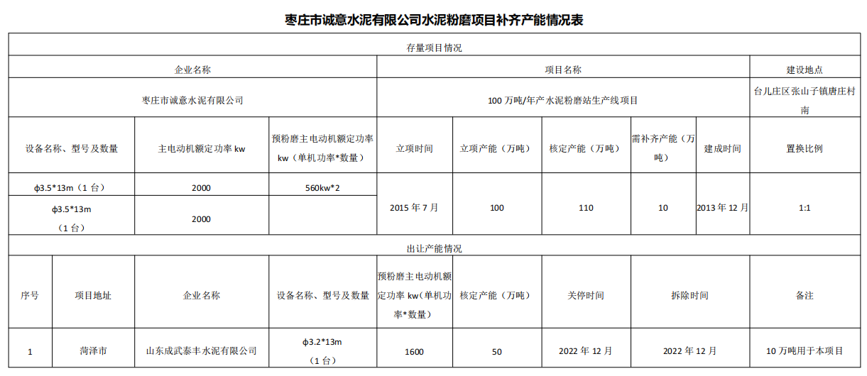 水泥人網(wǎng)注意到9個存量項(xiàng)目立項(xiàng)產(chǎn)能合計(jì)735萬噸/年,核定產(chǎn)能合計(jì)935萬噸/年,14個退出項(xiàng)目即需補(bǔ)充產(chǎn)能合計(jì)200萬噸/年。建成時間從2014年至2023年,補(bǔ)齊產(chǎn)能置換比例1:1。