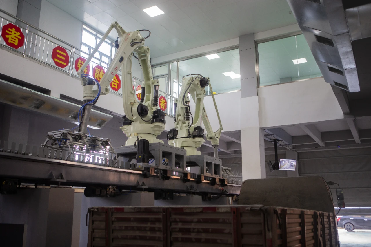車輛進廠、3D雷達(dá)掃描獲取車型數(shù)據(jù)、自動建模匹配最優(yōu)裝配方案、機械抓臂碼垛、裝車完畢車輛駛離……再配合輥道下灰系統(tǒng)和收塵系統(tǒng),看不到“飛塵漫天”,取而代之的是“低噪生產(chǎn)”“少塵車間”。“這個系統(tǒng)可以從根本上解決水泥搬運對人造成的職業(yè)危害。”唐蛟解釋。
