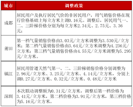 已有超過(guò)130個(gè)市縣,推動(dòng)居民燃?xì)鈨r(jià)格上漲