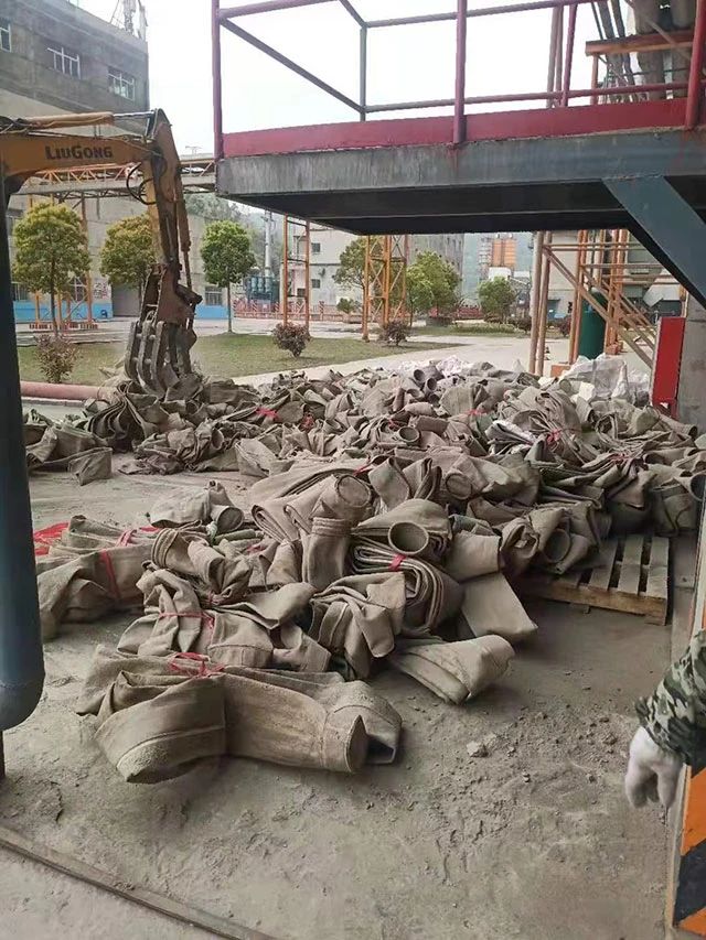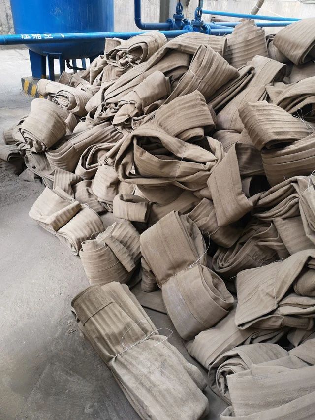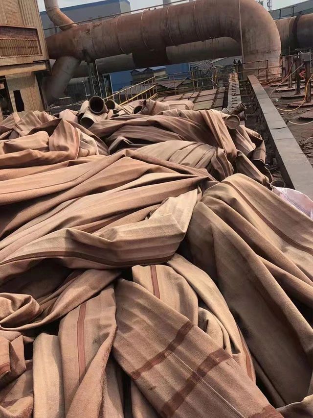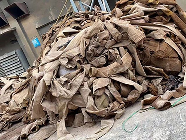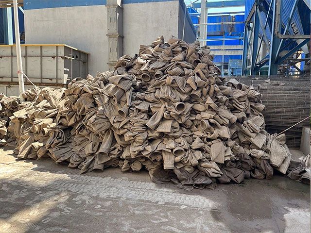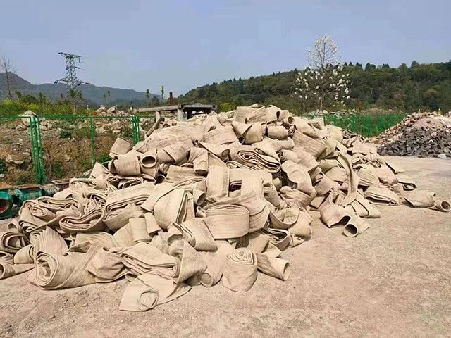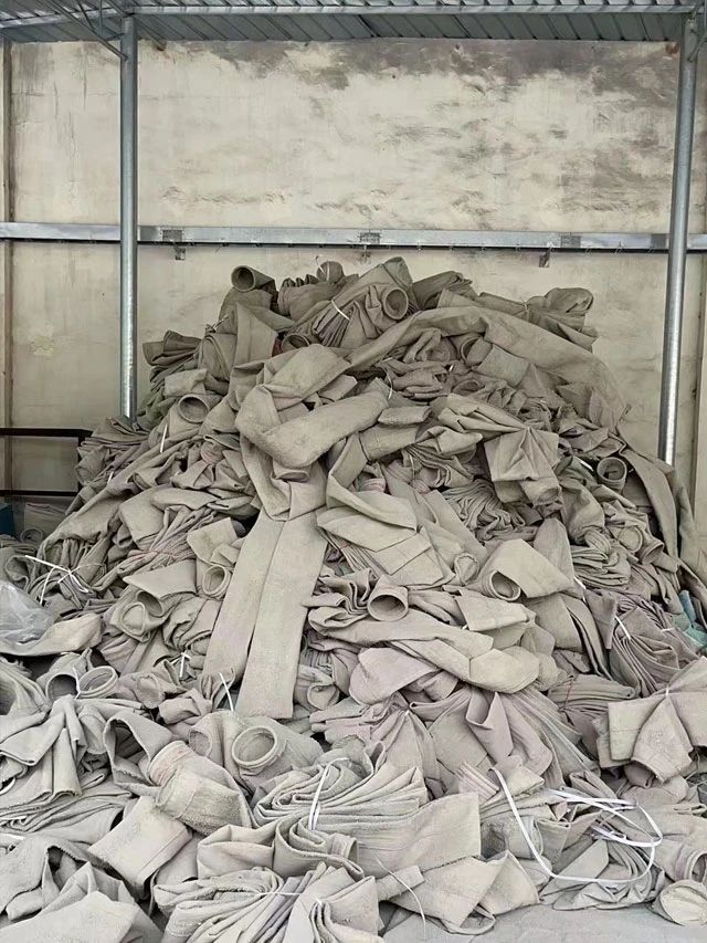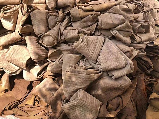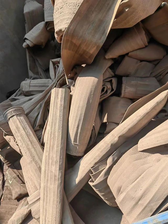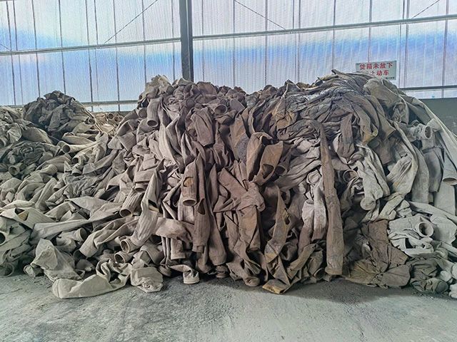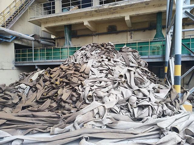 水泥廠、電廠、鋼廠換下來的廢舊濾袋,按類別進行整理和存放,以便于更好地回收利用,變現(xiàn)換錢。