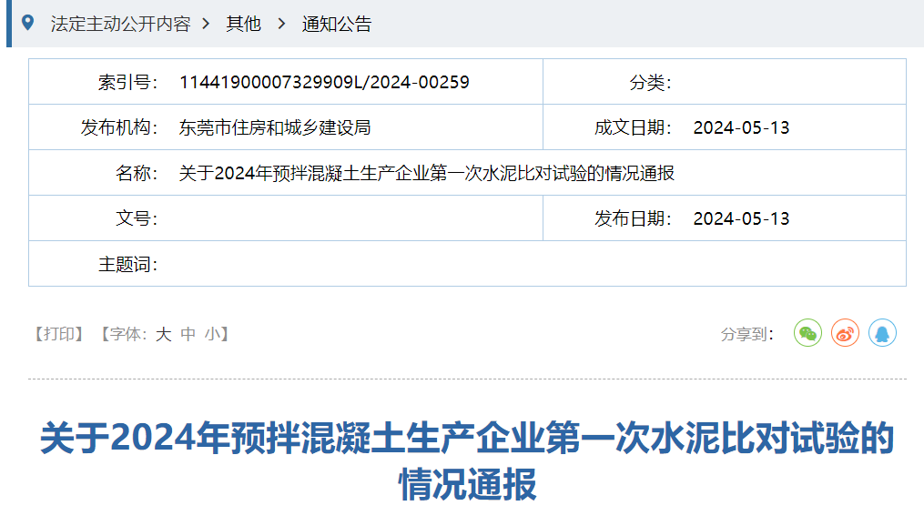廣東東莞市住建局5月13日消息,為加強(qiáng)對(duì)東莞市預(yù)拌混凝土生產(chǎn)企業(yè)的質(zhì)量管理,提高各企業(yè)試驗(yàn)室的檢測(cè)能力,東莞市建設(shè)工程質(zhì)量監(jiān)督站站于2024年3月22日組織各預(yù)拌混凝土生產(chǎn)企業(yè)進(jìn)行了2024年第一次水泥比對(duì)試驗(yàn),并于5月9日完成試驗(yàn)結(jié)果的統(tǒng)計(jì)工作。